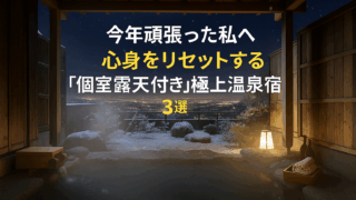 疲労がピークに達する12月。今年頑張った自分へ、最高の「ご褒美」を贈りませんか?誰にも邪魔されない個室露天風呂で心身をリセットする、選りすぐりの隠れ家温泉宿3選を厳選紹介。楽天トラベル/じゃらん限定プランを今すぐチェック!
